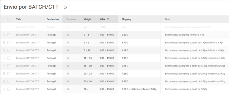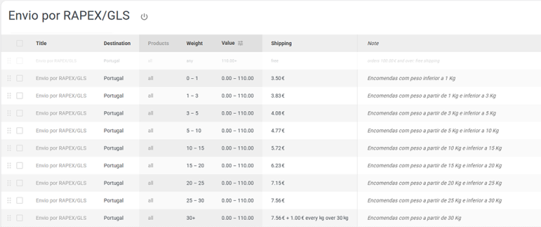 ** Acresce IVA à Taxa em vigor de 23% (Para pesos superiores, solicitar orçamento por e-mail)