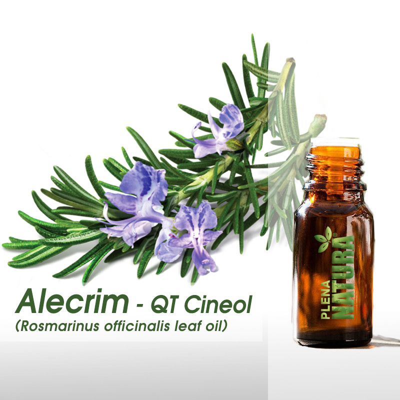 O óleo essencial de alecrim QT Cineol é estimulante, quente e simultaneamente refrescante. Este quimiotipo apresenta as mesmas características do QT Cânfora, no entanto é muito menos agressivo, permitindo a sua utilização tópica com mais segurança. É ótimo para estimular o cérebro, melhorar a memória e a clareza mental, e para ajudar com problemas de congestionamento das vias respiratórias e rigidez muscular.