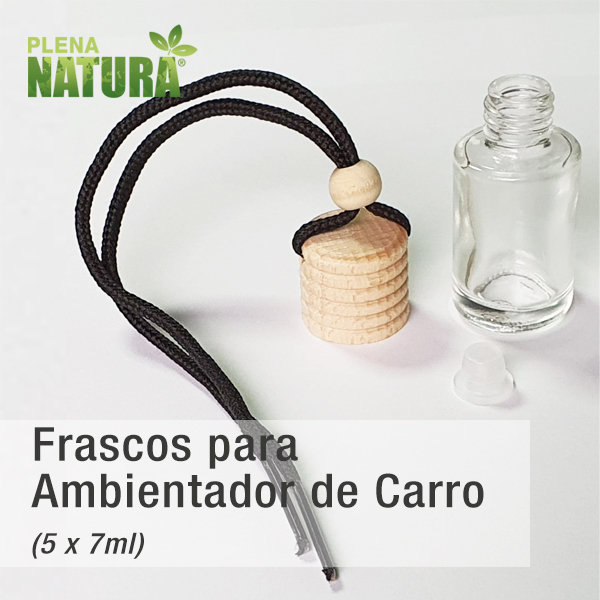 Embalagem: 5 frascos (7ml), 5 tampas de madeira porosa (c/ cordão), 5 obturadores de plástico.
