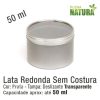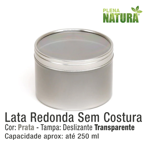 Recipiente redondo em folha de flandres, sem costura, com janela na tampa para permitir visualizar o conteúdo. É ideal para fazer velas, decoradas ou não. As latas são 100% recicláveis e revestidas com produto seguro para alimentos.