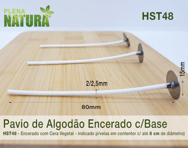 Pavio HST48 80mm – de Algodão Encerado c/Cera Vegetal – Montado em Base